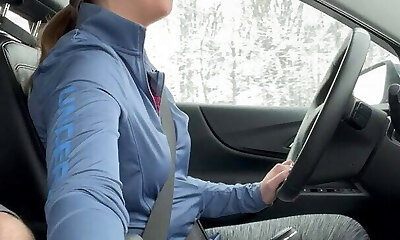 HOT Brown-haired Gives Her Passenger a HANDJOB