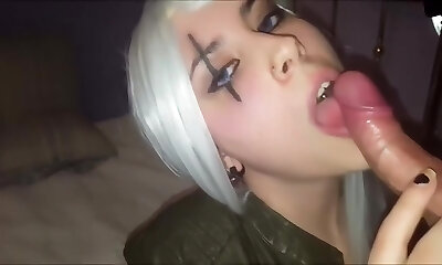 Bosomy tattooed blowlerina Nora Ivy demonstrates her good jizz-shotgun sucking skills