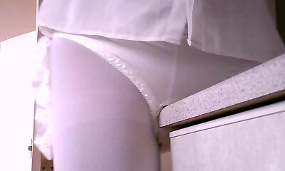 بلوند, شارون سفید در جوراب شلواری خالص مالش خودش