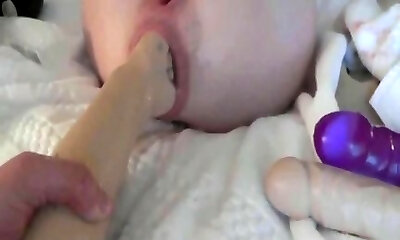 Gaping anal fist fetish lesbo big toy foreplay in bedroom