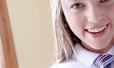 Teen Aubrey Star Removes Her Schoolgirl Uniform to Show Off