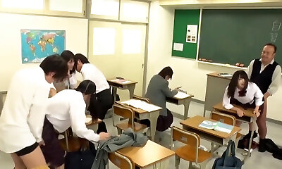 Yummy Asian college chick Riko Miyase is fucked by her raunchy teacher