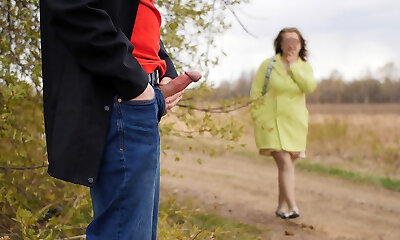 MILF in pantyhose with all-natural breasts masturbates outdoors