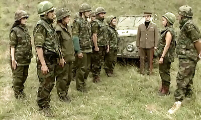 Sweet and splendid young soldier girl is hungry for a wood
