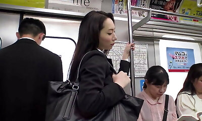 espléndida dama de oficina japonesa teniendo sexo salvaje en un autobús