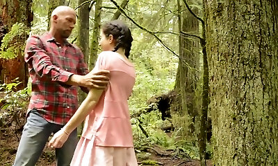 el tipo sobreviene a jogger perdido y la folla en el bosque