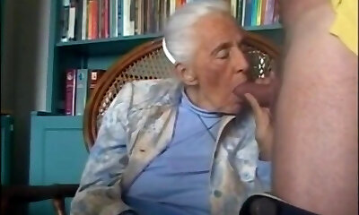 gigante gross abuelo tienta brown-haired hotty cuando su novio está fuera