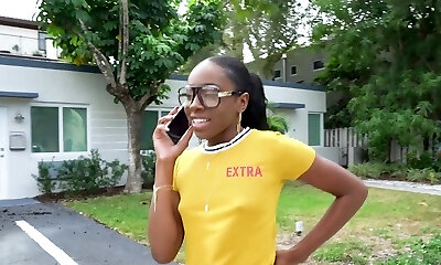 Black mega-slut Amari Anne has to suck a dick before getting banged