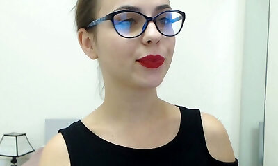 Mesmeric nerdy stunner is ready to reveal how pretty her pussy is