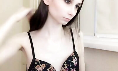 Young Goth Puts on Dark Red Lip Liner and Plays with Huge Puffy Nips
