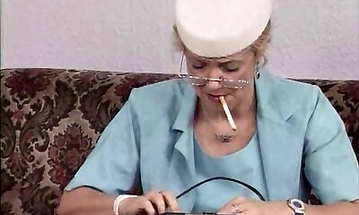 sexy retro smoking slut gives lipsticky blowjob