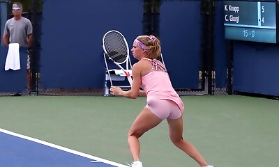 Nude playing tennis